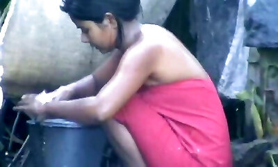 Sumptuous Indian housemaid washes her boss's son and sucks his dick