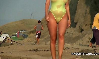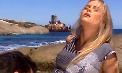 Blond head filthy wench gives awesome dick suck to her kinky boy on sandy beach