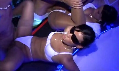 Lovely Japanese nubiles pounded hard in a raunchy orgy