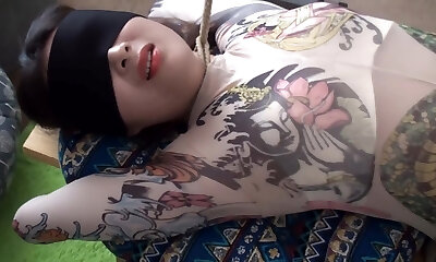Platinum-blonde bimbo moans with pain as her pubis was being tattooed