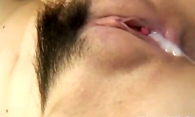 Super Hot Japanese babe Rei Serizawa gets creampied into hairy snatch