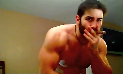 Cum & Cigar Smoking leather muscle guy!